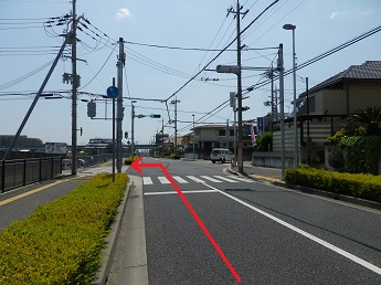 ![]() 南下して一つ目の信号を通過し、さらに南へ直進します。 |