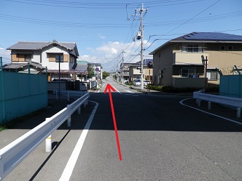 ![]() 丁字路を曲ったところです。 北へ直進します。 |