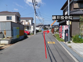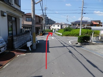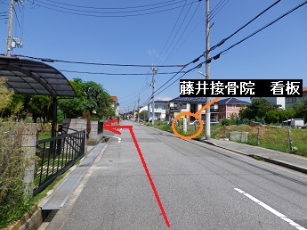 ![]() カーブを曲がると直進約30mのところ、右側に当院がございます。 |