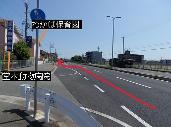 ![]() 魚住方面から明姫幹線を東へ向かうと左側にある『ニトリ明石大久保店』と『堂本動物病院』を順番に通過して、谷八木の側道へ入ります。 |