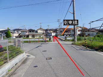 ![]() 坂道を下ると谷八木川の南東橋に出ます。 そのまま直進して橋を渡ります。 (橋の幅が狭いので対向車が来てる場合は気を付けてください) |