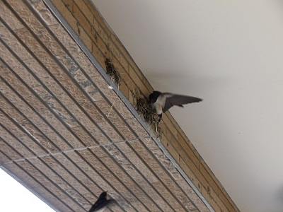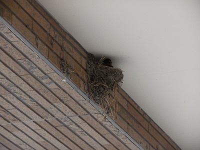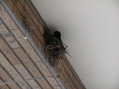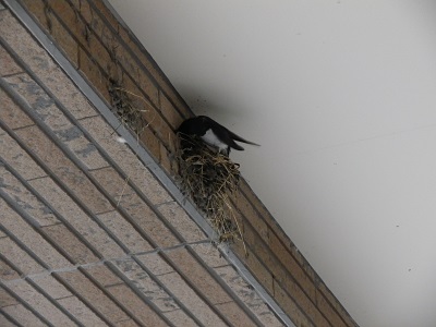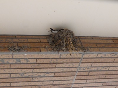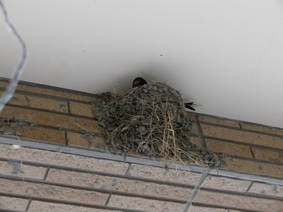 先日からツバメが覗きに来ていたのですが、今日から巣作りを開始し始めました。 壁にしがみついて何とか土をつけようと頑張っていますが下に落ちてしまう土の方が多く、なかなかはかどっていない様子です(-_-;) 諦めないで頑張ってほしいものです。 今日は朝からすごい暑さでツバメも昼間は休憩していたのか、全く現れずほとんど進まず終了してました。 |