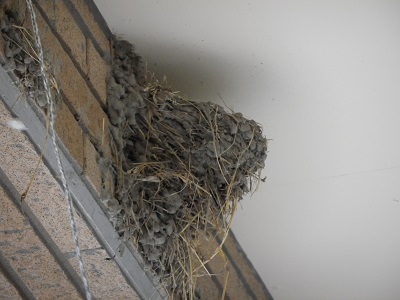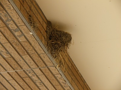 昨日の成果でようやく足場ができ、巣作りのペースが上がってきました。 下に落ちる土も減り、巣の位置も決まったようです。 (玄関の真ん中に決まったようで、かなり嫌な位置ですが・・・) 今日も暑くなりそうなので、巣作りも大変でしょう。 |