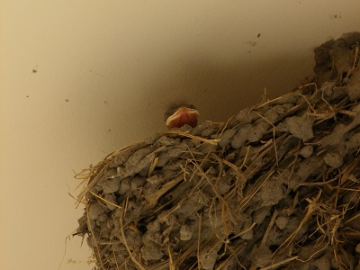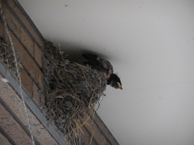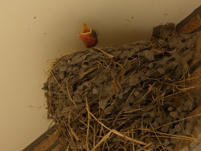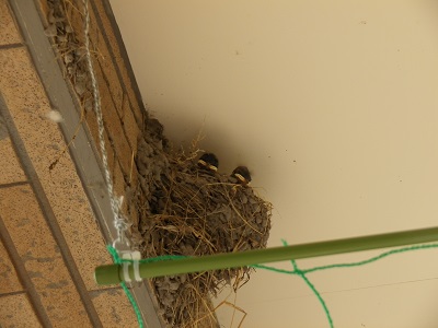 誕生してから3週間になります。 そろそろ巣立つのでしょうか? 最近は他の巣から巣立った若いツバメが巣を覗きにやってくることが多くなりました。 |