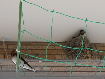 ご近所のツバメ大家さんにいろいろ対策を聞いてきました(^^) カラスやヘビなど雛には天敵も多いようで抱卵が始まったら対策が必要なようです。 ネットで検索して対策を検討中です。 |